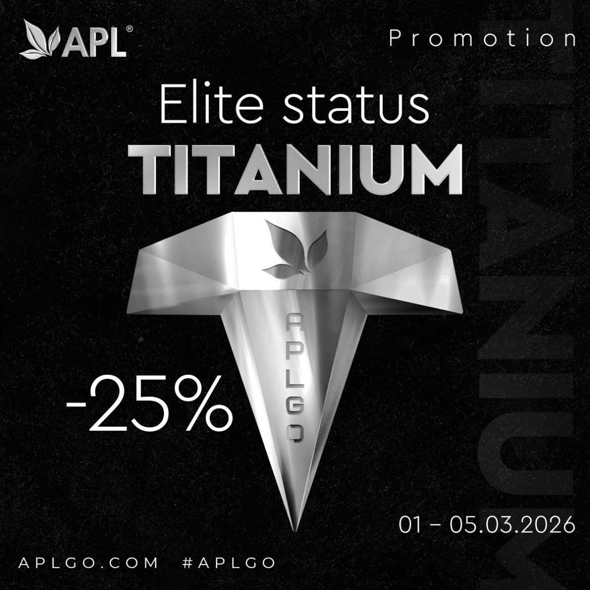 Meet spring with a new status! For only 5 days, you have a chance to get the legendary TITANIUM status with an exclusive 25% discount. Unlock access to maximum privileges and income right now — this is your year!